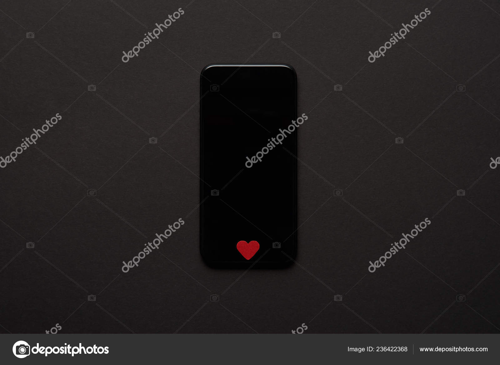 Top View Smartphone Blank Screen Small Red Heart Sign Dark — Stock Photo © AntonMatyukha #236422368
