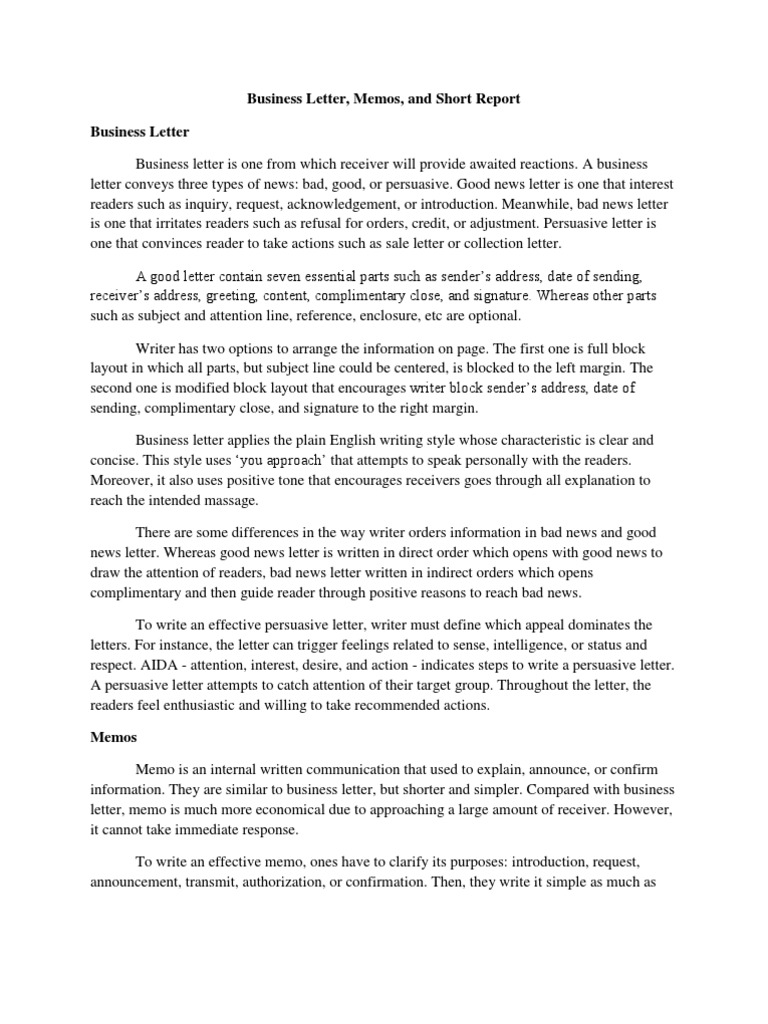 Writing Business Letter Memorandum Target Audience